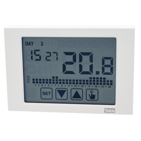 Nuevo Cronotermostato THERMARP Yokis, con pantalla táctil, y programación semanal con 3 niveles de temperatura ajustables.