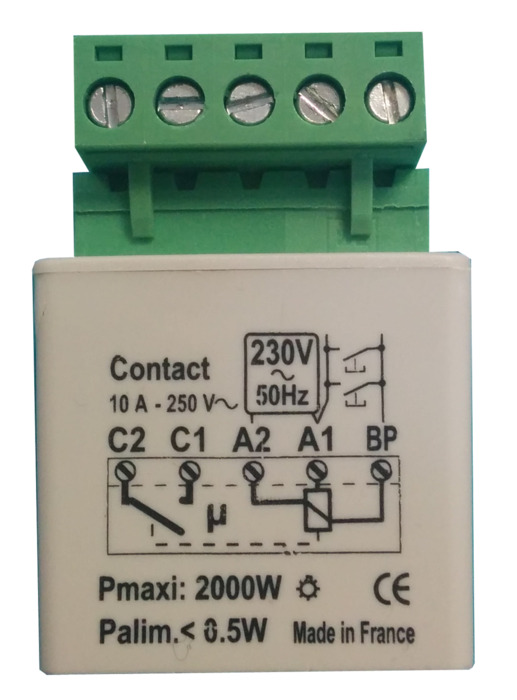 - Permite controlar una o más persianas mediante el contacto de un programador horario, un sensor crepuscular o un anemómetro.
