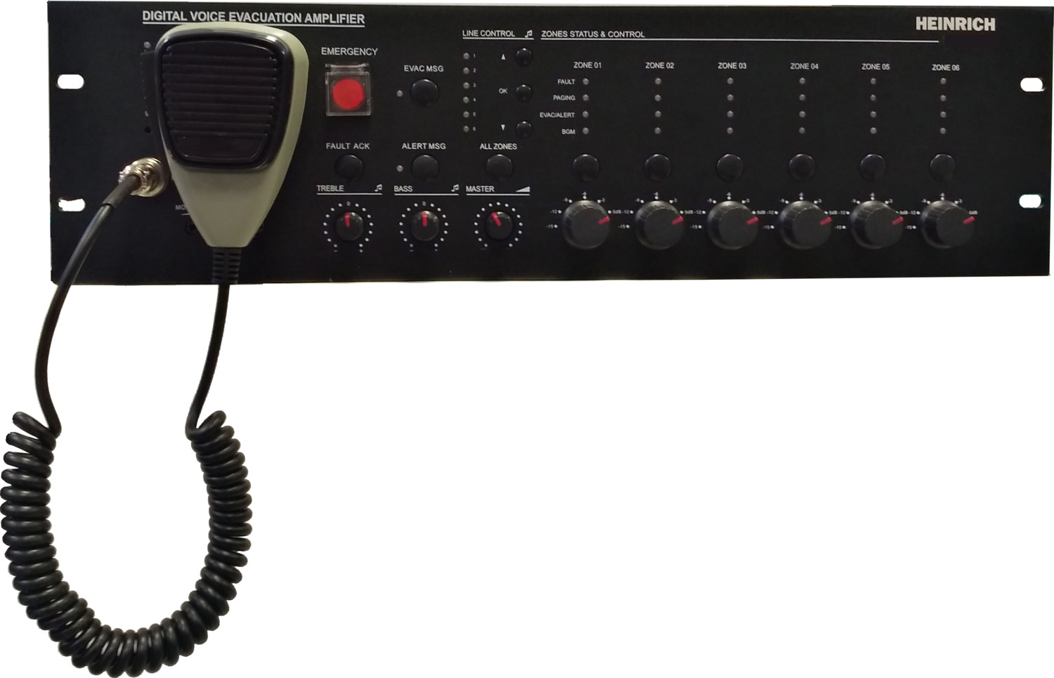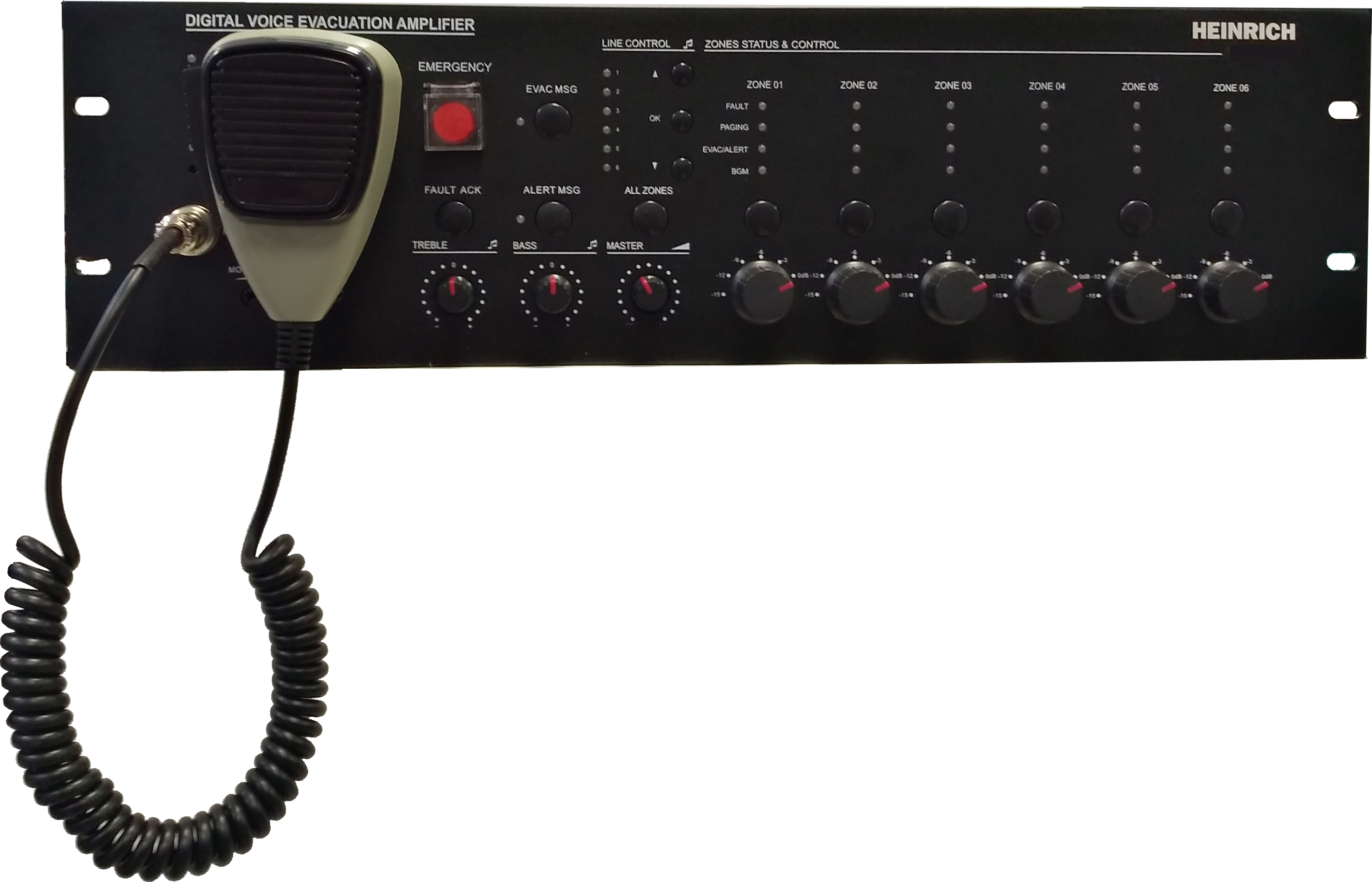 - Indicadores separados para las 6 zonas de EVAC, fallo, música / avisos y selección.