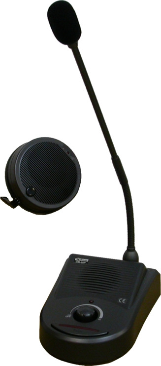 - Central con micrófono electret sobre flexo, con ajuste de volumen de micrófono y altavoz, pulsador de hablar.