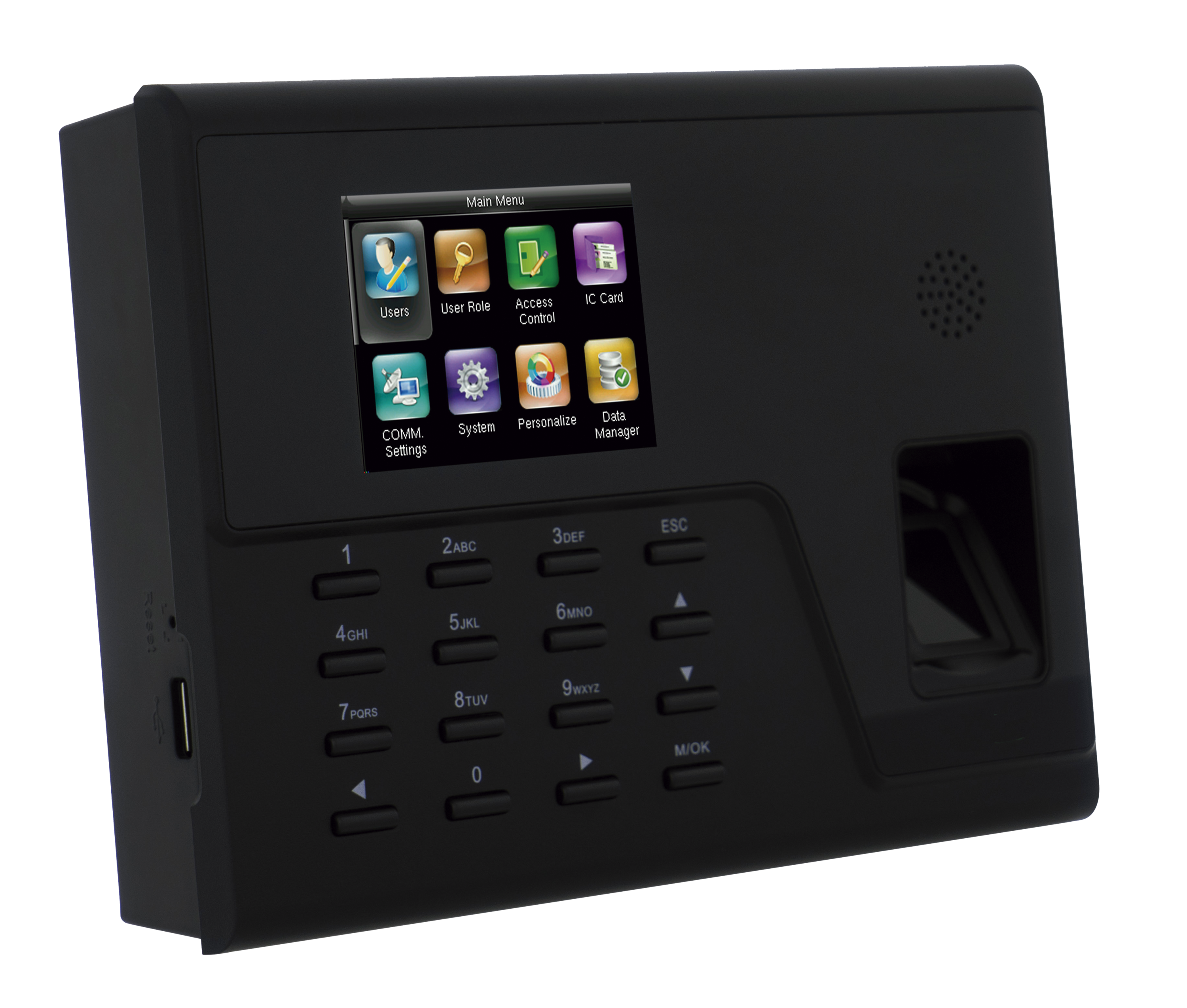 - Terminal de control de presencia con verificación por Huella, tarjeta de proximidad o PIN.