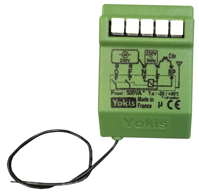 - Permite ser accionado tanto por un emisor vía radio como por cable.