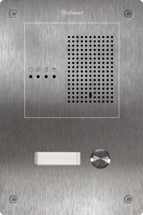- Marco de montaje con módulo rejilla y un pulsador para la instalación de puntos de intercomunicación antivandálicos con LEDS informativos para las personas con discapidad auditiva.