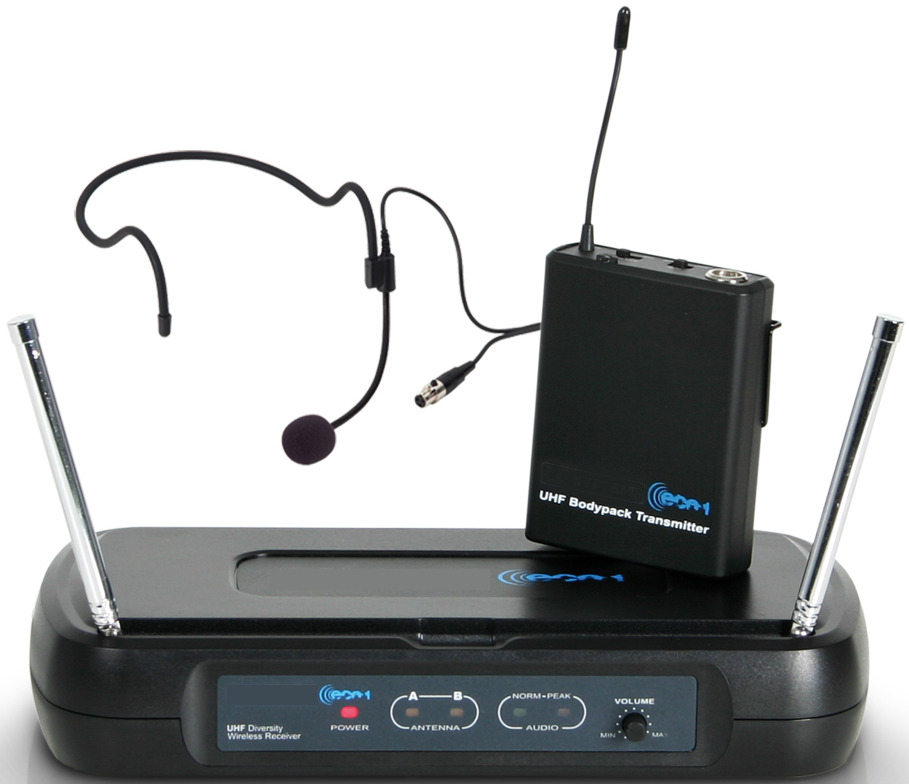 - Kit con 1 petaca y micrófono diadema y receptor UHF de 1 canal.